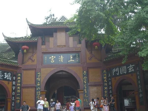 上清宫三个大字是蒋介石手书,两旁联文是国民党元老、书法家于右任撰书“于今百草承元化,自古名山待圣人”,说青城山的草木都得到了道家仙气的沾染,自古这座名山就等待各位朋友的光临。在上山的过程中到处可以看到“道”,