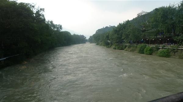 下面就是在南桥上看到从宝瓶口流入成都平原的水,水流很急,有漩涡: