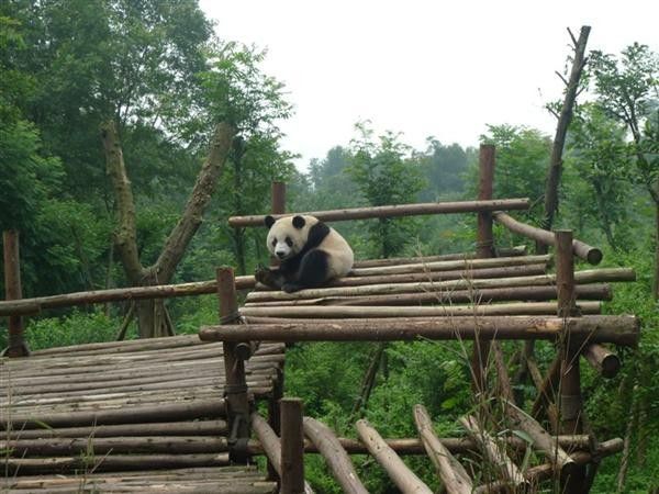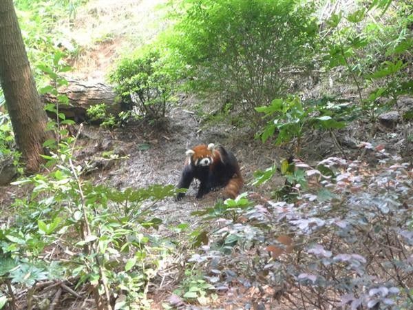 然后就一路走下来,有大熊猫的产房,别墅。早上快十点钟,熊猫们还是很给面子的出来活动了,就是感觉小熊猫比大熊猫要多见些。看看这只大熊猫,才睡起。