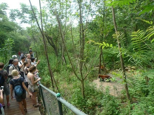 ,我们还看到有个外国团也在观赏小熊猫,