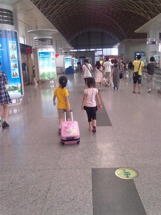 7 月24日一早我们从文殊坊打的到火车北站,我们打了两辆车,一辆11元,一辆12元。到了火车北站到售票窗口拿身份证打印动车票(已提前两天在网上购买动车票,当天只有站票买)。我们拖着箱子坐上8点33分的和谐号抵达青城山,车上车下给孩子们一通乱照,青城山的工作人员最后来请我们快出站。
