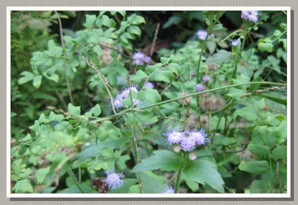 放下所有的东西,驱车于白水带,午后的阳光灿烂却不再灼热,一双运动鞋,一套休闲服,一部照相机…… 由台阶而上,两旁草丛里小花谁曾注意过呢?调了下微距,把它留下了。