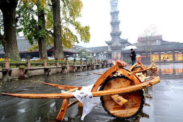 这种独轮车四川叫“鸡公车”,可载货可载人,现在成为游客体验消遣的道具了。
