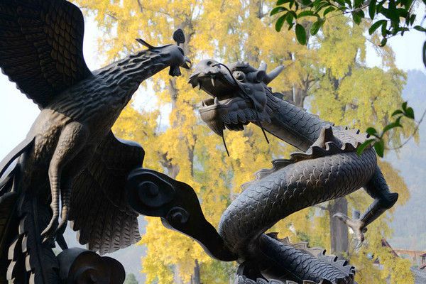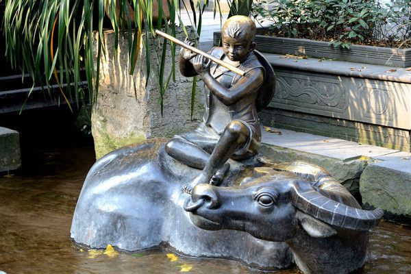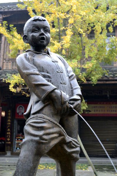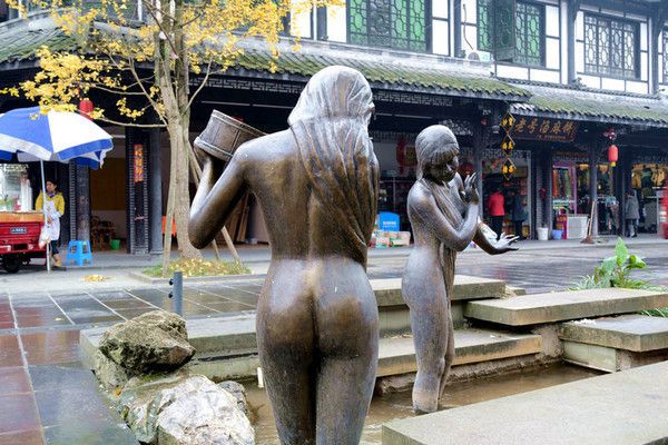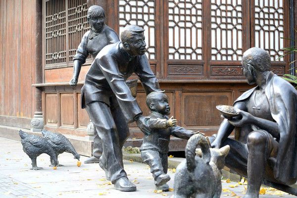 街头有不少体现川西民风民俗的铜雕塑