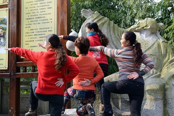 几位大姐兴致勃勃在模仿航母style--走你,有点搞笑哈。