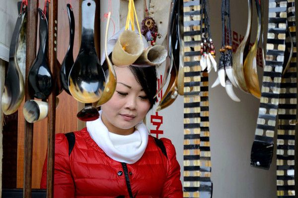 卖牛角制品的美女老板
