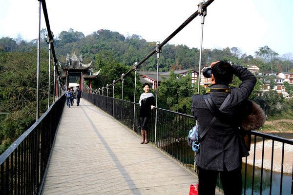 在味江索桥上留影的情侣
