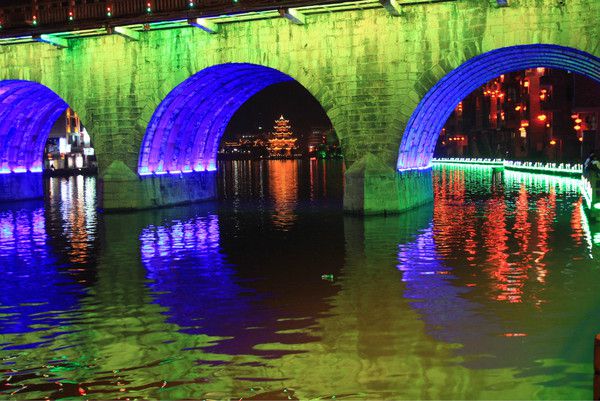 3. 祝圣桥,大新桥:古镇横跨舞阳河的大桥众多,以祝圣桥和大新桥最为出名。美丽的拱形倒映在宁静的舞阳河里,两者融为一体,煞是美丽,尤以夜景更加醉人。