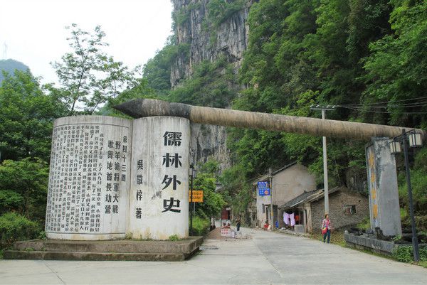 (2) 乘坐电瓶车到达景区收费处,然后往回徒步到景区大门口(即有“儒林外史”几个大字的门),从该门等待有空余座位的电瓶车回到古镇。如果体力尚好,可以选择徒步4公里回古镇,沿途的风光也是不错的。这次徒步是和舞阳河游玩时认识的一对重庆小两口一起的,大家很聊的来,兴趣相投,于是4个人一起搭伴上路。一路上有说有笑,很是开心。