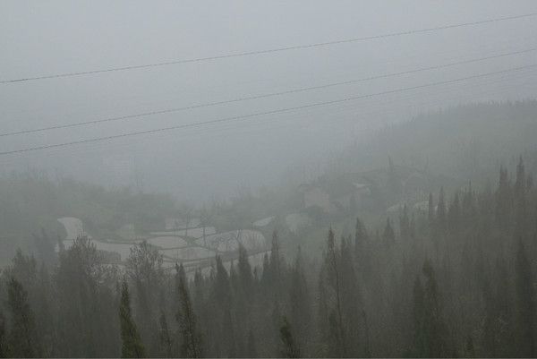 苗疆长城处看到的小型梯田,清晨雾有些大