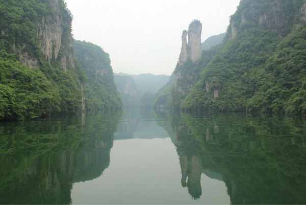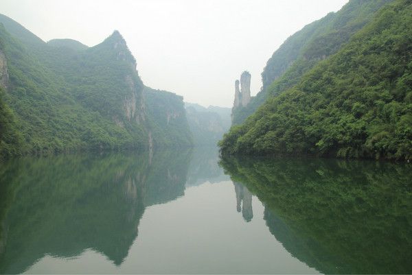 Tips:在旺季,最好选择早上第一班船,大概8:30左右开船,此时的舞阳河平静的像一面镜子,将两岸的景色全部收纳在这碧绿的河水中,十里画廊,天水一色,碧波荡漾。因为游船较大,前面游船过后会短暂的打破宁静的水面,倒影不再清晰。