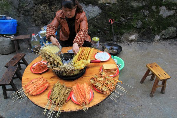 陈年道菜:陈年道菜系贵州省镇远县特产,深褐色,香味奇特,在腌菜中,别具一格。相传为镇远青龙洞中的道士所创,故称“道菜”,由于此菜储藏愈久,品质愈佳,味道愈美,因而又称“陈年道菜”。镇远劳动人民,每逢春季春菜旺盛时,有腌制长盐菜、干盐菜、寸寸盐菜的习惯,镇远古镇美食、镇远地方特色风味菜陈年道菜就是在这个基础上发展演进而来。镇远是贵州东部的水陆码头和交通要道,又是许多商品的集散地。随着客商往来,陈年道菜的美名也享誉四方,到了清代,曾为进奉皇室的贡品。
