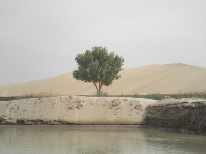 塔里木河流经这里、就在她的边儿上是一望无际的沙漠、很神奇!