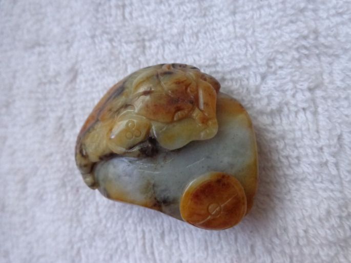 和艾姐相识还有一段故事,有一次我去北园春市场买干果,北园春市场是乌鲁木齐最大蔬菜干果批发市场,看到在市场的里面有一个玉器城,由于对玉的热爱,就进去看看,一共有十几家卖玉的店铺,我转了一个遍,在艾姐的店里看中了一件手把件,是件糖玉的吉祥兽,由于价格的原因没有买成。