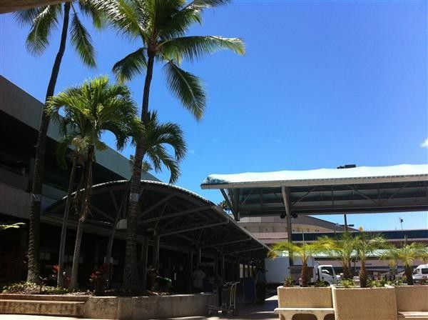 夏威夷与上海有18H的时差,我们到达夏威夷是当地时间7/25 10:10,感觉白赚了一天,建议第一次来夏威夷的朋友预订接送机吧,我通过携程预订了接送机,40元/人,比到了夏威夷打的合算许多,毕竟人家的通用货币是美元,咱是人民币。火奴鲁鲁的 机场不大,我们的接机点在团队1号口,很好找,一出门便寻找中文的地接,真是无巧不成书啊,接我们的正式去年团队游的导游阿明,顿感他乡遇故知啊,寒暄几 句后,阿明告诉我们,还要等同车的其他客人(一家三口订的亲子自由行),估计第一次来不熟悉,所以入境需要花点儿时间,最终十一点多,这一家三口终于出现 了。