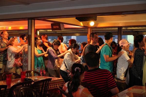 用餐过半后,工作人员会将自助餐桌收掉,瞬间这里就变成了舞池,之后的特色舞蹈和互动节目就在着细细长长的区域进行。