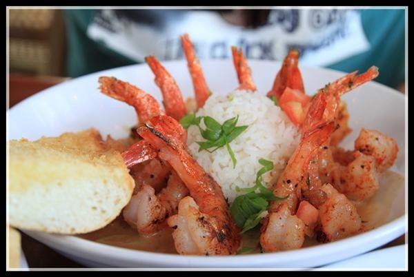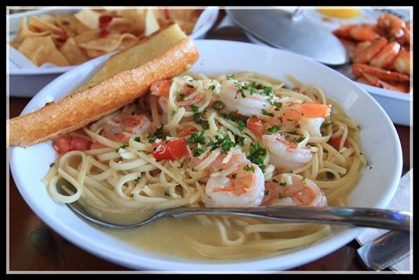 “Shrimp New Orleans”新奥尔良虾饭,相比意面,我比较喜欢这个口味,十几只新鲜的大虾围着一坨饭,配上一块面包,虾肉新鲜弹牙,很有嚼劲,推荐。
