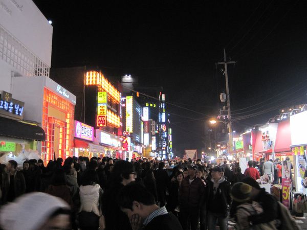 商业区的街道很吸引人,护肤品店,化妆品店一家接一家,价格也不贵。餐馆更是热闹,年轻人们三五成群地聚在一桌上吃着香气四溢的烤内,喝着一口口的清酒。