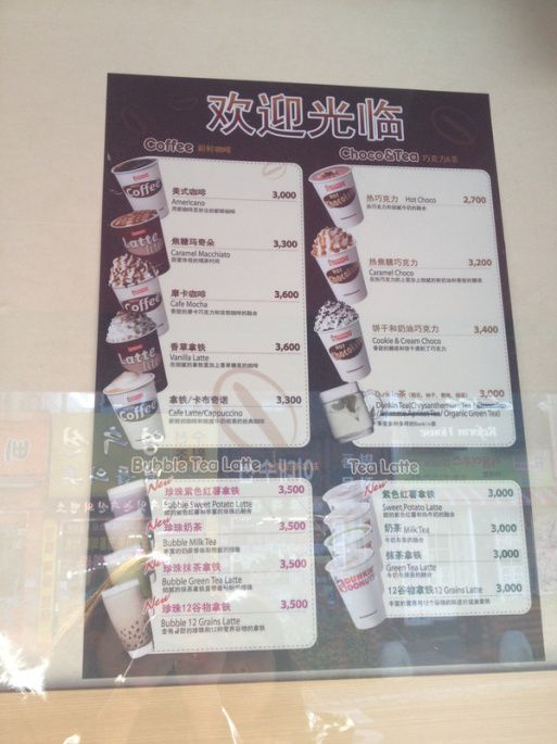 有中文的。菜单。。唐纳滋还有卖珍珠奶茶。