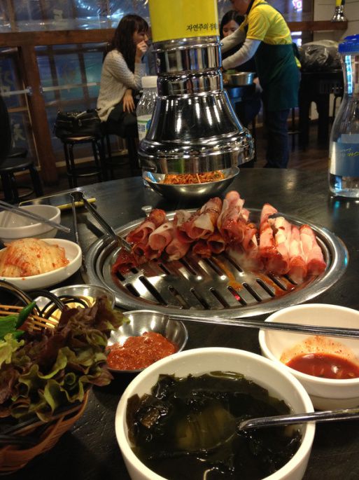 食物:韩国特 色店还是以辣白菜汤,里面有猪肉那种为主,牛肉汤,牛尾汤什么的相对比较贵。餐厅的菜单很简单,不像中国这么复杂。Dunkin Dounts 还算看到比较多,卖的品种也多。麦当劳和肯德基不是随处都可以看到。传说中的人参鸡汤,朋友说没那么好吃,所以没有去鉴定。Starbucks 同样是生意很好,咖啡5000韩元左右一大杯。梨花女大附近的意大利面店也不错。