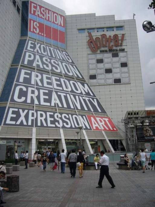 首尔的购物主要集中在明洞、东大门、南大门等地。导游领我们去了东大门。转了两家最大的商场,感觉有点像沈阳的五爱市场,破破烂烂的,没什么特色。里面的业主,好多都会说几句汉语,可能中国游客去得比较多吧。