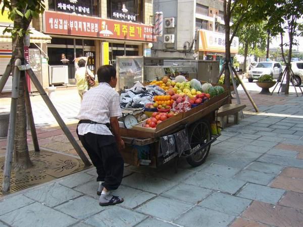 韩国也有街头小摊,设备比我们一些县城的还简陋。