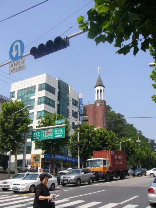 夜晚,在济州岛和首尔,隔几百米,就能看到红色的十字架霓虹灯闪亮。韩国信仰基督教的人好多。