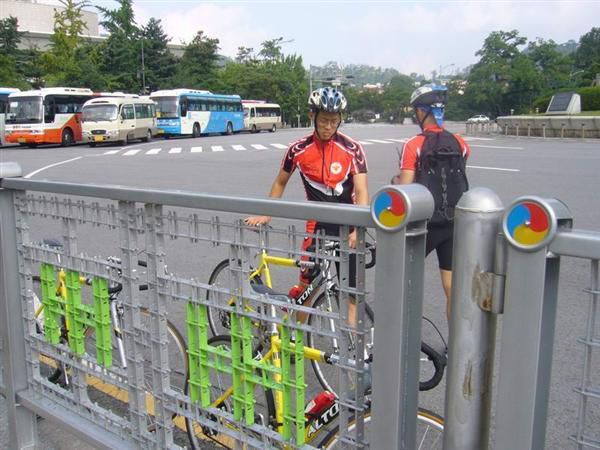 在青瓦台附近,我看见两个身着自行车运动服的小伙,头戴帽盔,骑着赛车,下车后才发现,他们后背上竟然写着police。