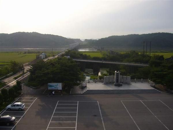 这里,有两座桥,一座旧桥,1950年代的朝鲜战争被炸断了,另一座新桥,铁路已经修通到了朝鲜的开城。但是,它是不通的。