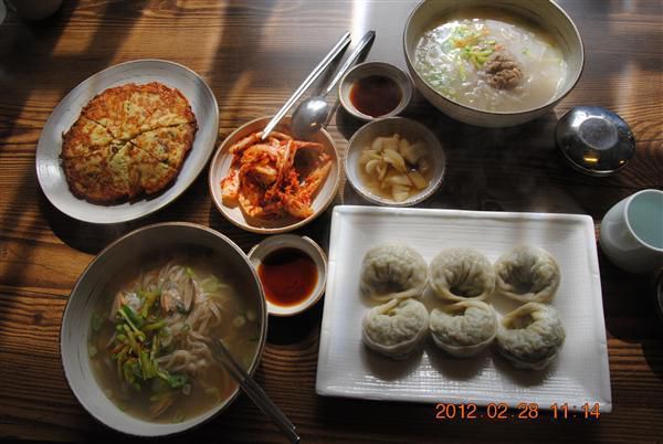 海鲜面:我们在仁寺洞街上随便进了一个面馆,夫妻俩开的,布置很温馨,面条是手擀的又筋又滑,海鲜汤非常鲜美。还要了煎饼、饺子都很好吃。