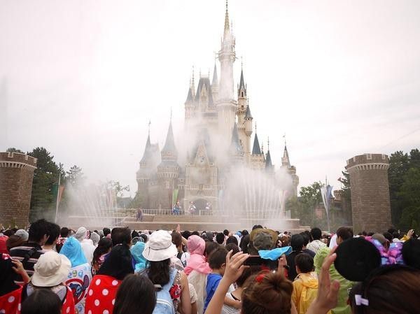 东京迪斯尼是分Disney Land和Disney Sea两大部分的,Land偏向于大众人群,相对项目刺激程度不高,而Sea就要刺激很多,比较适合寻求刺激的成年人参观。前者有七个主题区乐园和多彩多姿的娱乐表演,后者是充满冒险与创想的大海,也是迪士尼之首度以“海”为主题的主题乐园。单从Land的面积来说,没有像导游介绍得那样5倍于香港,貌似比香港大不了多少。也许加上Sea和酒店的面积会大一些。全亚洲最大东京迪斯尼乐园是号称全世界唯一一家凭门票收入盈利的迪斯尼乐园呢!