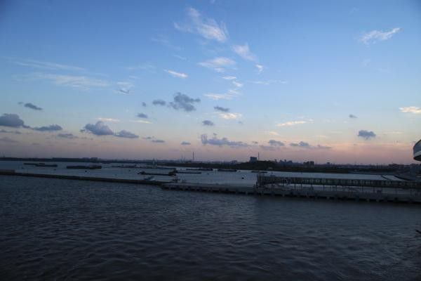 全部结束 也傍晚了夕阳西下 让整个船舱都染上了金黄色 离港的时间 终于到了 船慢慢开始离开港口 驶向大海 心里确实开始有点激动啊。