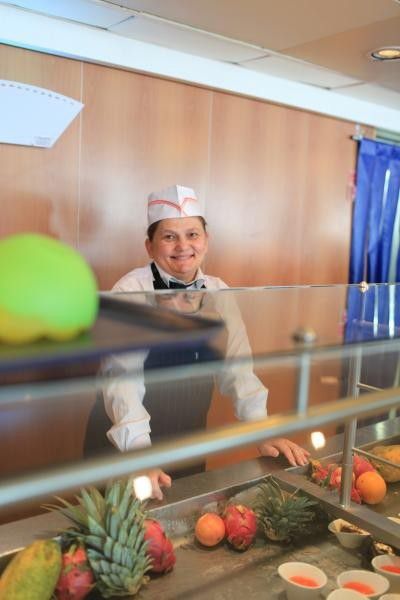 办理过关上船手续很快带上船票护照就可以 大家都很有秩序的在排队 所以没有多长时间 就登上了维多利亚啦 刚上去 就会有几个洋妞美女在等着你 热情的拉你一起合照 还有每个船的成员 你只要看到的他们的脸上都会洋溢着微笑 这也是我在维多利亚最多的感受。就是他们的微笑 和亲切贴心的服务。在几天住宿期间 发生的一些小问题 也会很速度的就帮你解决了。