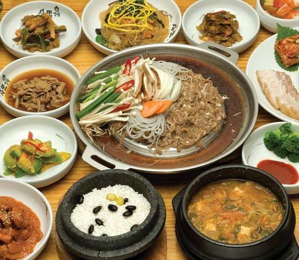 来到民俗村的集市,这里又是另一番景致,狭小的街道两旁是一排排低矮而又黑油油的韩国传统小吃店,一个个胖胖的“古代”阿珠妈正在烧烤各种韩式小吃。街上小贩的吆喝声,市场的喧嚣声和着小店里飘出的阵阵香味,混和出一曲古代乡村集市交响曲,煞是热闹。街边的树下,一张张韩式平床上坐着吃东西的赶集人,引诱得我们也急忙坐上去。呵呵,早就想一尝韩国传统小吃了,点了绿豆煎饼、南瓜饼、烤肉串和米肠等,盘腿坐下,在这热闹古老的乡村集市上,慢慢品尝着这古老的美味,似乎也在品尝着人生的悠闲。