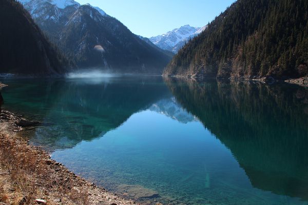 镜海下车后,大约8点45分,镜海在9点左右有一小段时间非常平静,不像网上其他攻略说的一定要早上7点,拍了镜海,可以沿着公路走回或搭车回诺日朗中心,推荐走回去,其实不远,走20分钟就到了,沿途可以拍拍路边小景。回诺日朗中心后,搭车去长海,在长海一定记得走栈道,下到长海边上,可以看到独臂老人松,而且栈道上的景色远比观景平台上好。