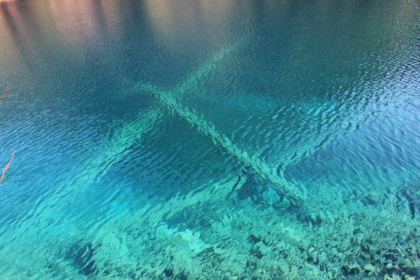 看完长海,搭车去五彩池,沿着楼梯往下走,第一眼看到五彩池时,一定会被震撼到,碧蓝碧蓝的水啊。好了,仅此而已,走近五彩池后就没有那么惊艳了,淡季枯水期的五彩池没有更多出彩的地方,拍几张照片后就沿着栈道往下走,沿途栈道上还有些小景可以拍些小片。