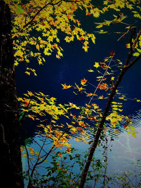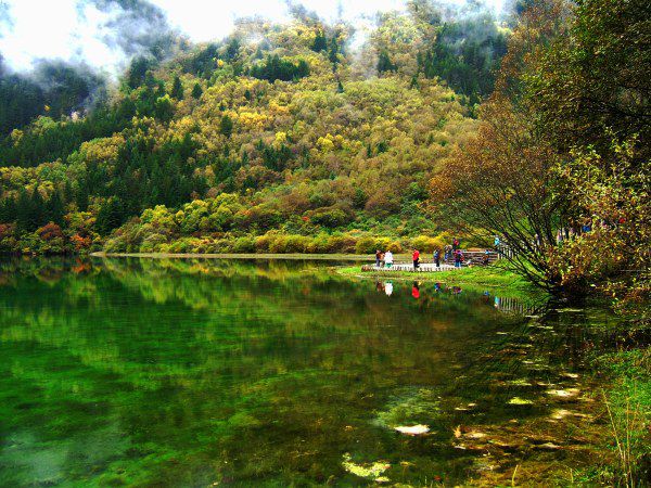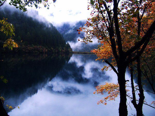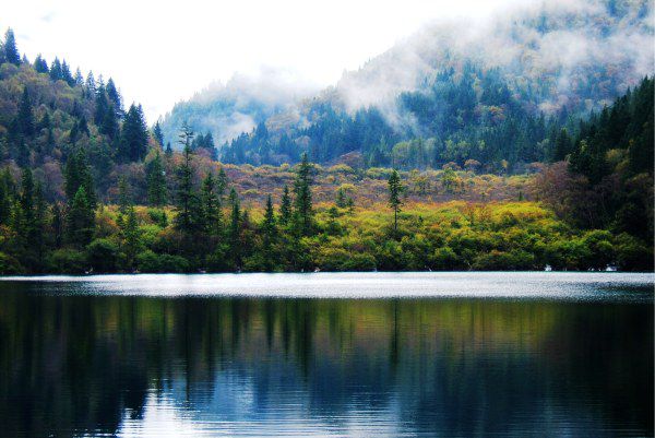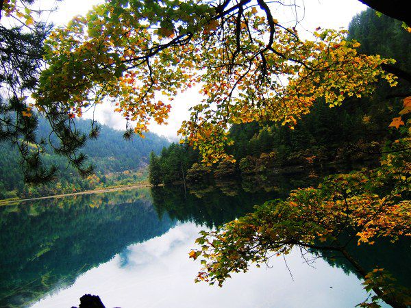 她的每片叶子都抒写着仙景的诗意,将山间色彩倒映湖中