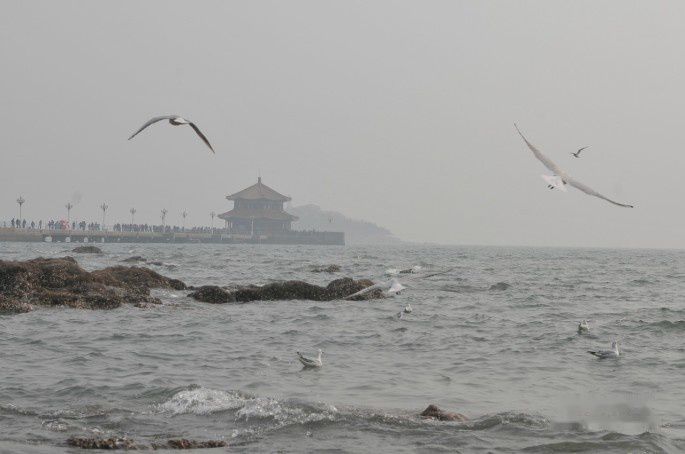 离乘机场大巴还有一个小时,我们就在栈桥边坐了,看海鸥,看大海,看人群,在想什么时间再来,依山傍海,红房绿树蓝天,无数异国情调的老建筑,青岛太美太美。