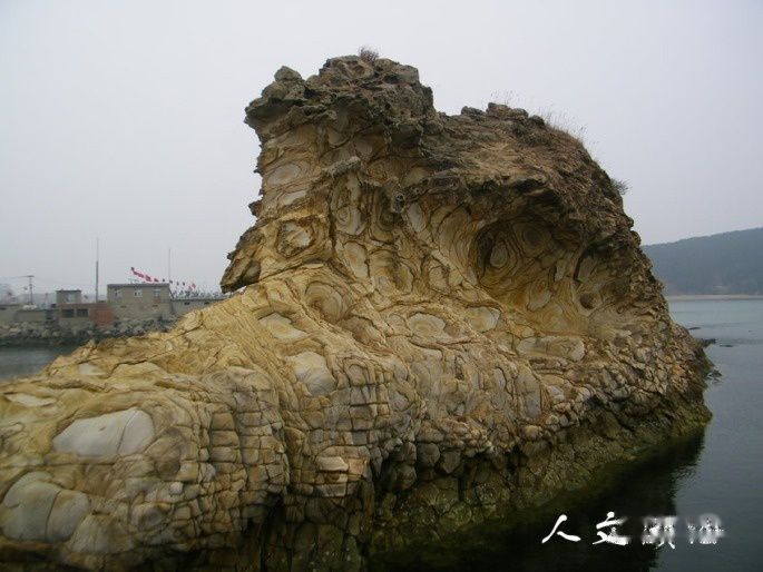 是集海蚀柱、海蚀纹、海蚀浮石为一体的海上奇石。此石体积巨大,造型奇特,色彩艳丽,花纹多变,独具神韵,早在清朝道光年间就被誉为荣成八大景之一。