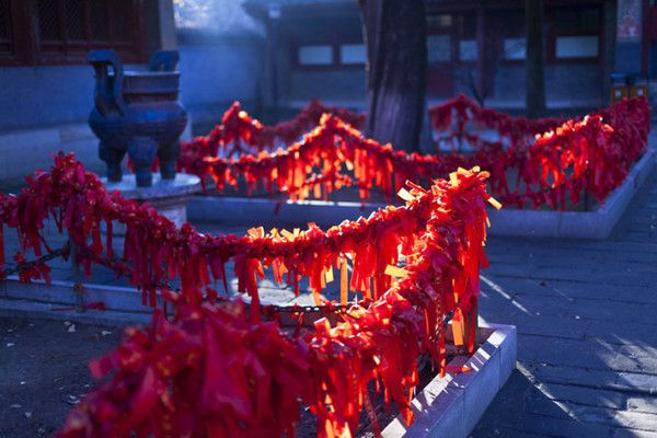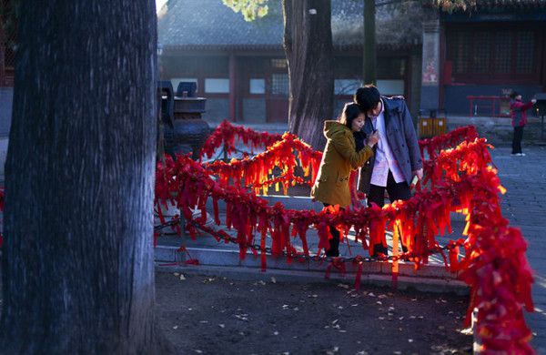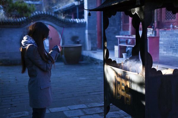 一个梦,化作一份心愿,绘成一幅虔诚的祈祷,定格在这一瞬间。一个完美的侧影,一对幸福的笑脸;一炷香,一根红线;燃烧着,凝系着,双眉中或许有着红尘往事的些许无奈,今日奔波中的汗与泪,更在期冀着明日艳阳的甘美。
