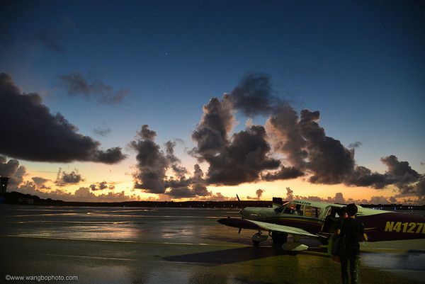 上 海飞往塞班的航班是早晨六点左右到,我们计划直接从塞班岛机场坐飞机前往天宁岛。走出机场,发现外面天空蓝的透彻,云朵压的很低,预示着今天将是个好天。 由于两岛距离极近,所以飞行于两岛间的飞机也是极为经济的小飞机,连驾驶员一共只能坐6个人,真是第一次坐这么小的飞机哦。由于飞机极小,所以上飞机前还 要考虑载重和平衡,每位乘客以及行李都会过重,以保证总重不超过飞机载重,并且安排座位要考虑机舱的左右平衡。随着螺旋桨的马达声起,我们很快就升到了云 朵一样的高度,我们可以俯瞰整个塞班岛,而天宁岛也就在眼前,两岛相隔也就区区十公里左右,整个飞行时间只有短短的十五分钟,我们还没过足瘾,飞机已经准 备着陆了。