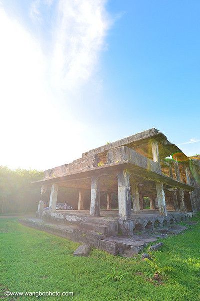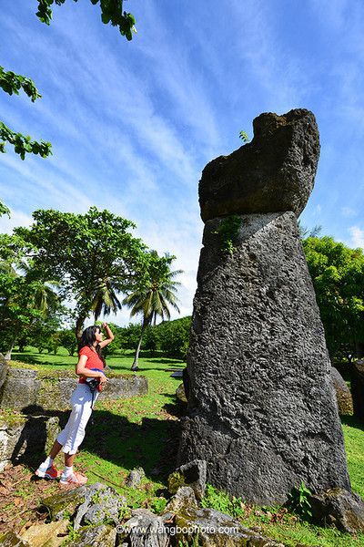 我 们住在天宁皇朝酒店,从酒店出发,没开多远,就看到一些巨石屹立在那里。这是为数不多的岛上真正土著的遗迹,他们是古老的查莫罗文化产生的石灰岩,现在我 们尚能看到的是这些巨大石柱的残骸,他们曾经是查莫罗人住房构造的一部分,在屋子下面用来支撑起整个房屋。我们走到石柱边上,发现有些石柱真的很高大,很 难想象对于这么大的石柱,当时土著人是如何弄来并架好的,也很难想象这么大的石柱上的房子要有多大。