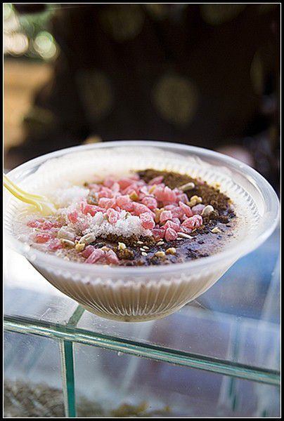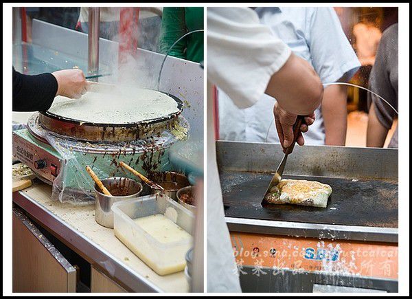 出了津门故里转去南市食品街,系列小吃就陆续奉上,嘿嘿,第一个自然是先上我最爱的老爹最喜欢的煎饼果子,小时候总听他说,据说这是老天津人每日必备的早餐,面是绿豆面,越纯越好,先舀一勺面摊在平底炉上,用一个T型小刮子一转,就成了薄薄的面饼,磕一个鸡蛋,那个小刮子再一转,鸡蛋液就摊匀了,撒上香菜、葱碎,铲子以铲,两手一翻,煎饼就翻转过来,依次刷上面酱、辣酱,撒上一些椒盐和芝麻,然后把一根油条,一卷,一张草纸一兜,ok,齐活。据说以前卷在煎饼里面的果子是油条,现在都变成了薄脆,趁热吃一份,一天都是好心情。听老爹说,这个最正宗的吃法是配一碗锅巴菜,到现在没弄明白,锅巴菜到底是个啥,很可惜,这次没有找到老爹喜欢的锅巴菜,重温一下童年的记忆。还记得读书的时候,老爹想吃煎饼果子,我就很默契地翘课,乐呵呵地跟他骑车去挺远的一个地方买,配不到嘎巴菜,来一碗豆腐脑,味道也是很滋润的。在兰州,煎饼果子还是挺少见的,早餐吃个这个,比来碗牛肉面贵。小时候,我总认真地看他们如何制作,对那个t型的小刮子特感兴趣,一直琢磨着怎么弄一个,回家给我老爹做这个吃,呵呵,关于吃的精神,看来是家传来的