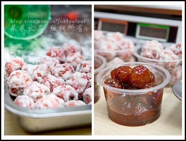 这个好漂亮,我问了是什么,回答说镜糕,也不知道是真是假,但真的超可爱,很柔软的感觉,那个小红点也显得超Q,喜欢极了,不过知道是糯米做的,我的胃不能接纳,还是把购买的心思放下了。如果再碰到,一定会买两个,捧在手上的感觉也不错啊。