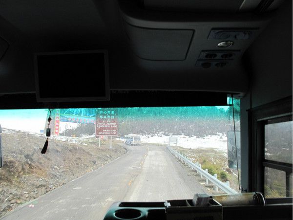 第四天,这次旅程中最出乎意料的一天,当我看到车一路开到了有积雪的山上,道路崎岖,整个大巴上只有我和L小姐两个乘客,一路各种道路沉降小滑坡,我一度觉得自己要被卖到山沟里去了。这一切的一切要从一天前的下午我们打电话给旅店老板要他帮我们定回成都的长途大巴票说起。想到当初我和他强调我们想坐靠前排的位置,班次晚一点也没有关系,就很好笑。车上真正意义上的乘客只有我们两个而已,根本就只想坐哪坐哪,睡着也没关系,当然我们完全睡不着,看着车一路盘山到能看到云海还有大片的积雪,这是五月啊,到处滑坡,深怕一不留神车翻到万丈深渊去,肾上腺素飙升啊。(还有一个大叔,不过好像跟司机是认识的,中午吃饭的时候他们都是免费得炒菜,我和L小姐是15一份的大锅饭,最讨厌的里面的荤菜猪肝!!!) 我们上了一辆黑巴什么的。这车一路就没上过高速,唯一的一次是去接一个乘客上了高速又开回去了。。。最后快到成都的时候在一个加油站把我们放下了,并且安排我们上了辆,小面包车。面包车里只剩一个位置了,我可怜的L小姐只能勉强蹲在我前面。好在路程不长。最后面包车把我们放在了一个城市边缘的地方,我们打车去市中心又花了几十块钱。。。好在早上惊险的盘山结束之后一路风景优美。晚上吃的俏媳妇火锅。味道很好,漏勺一下去,满满一勺花椒。