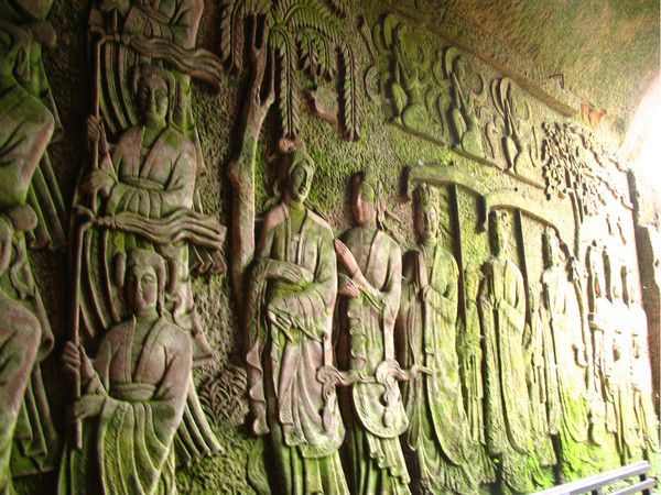 第五天,乐山。乐山大佛由于在我多年的想象世界中不断的膨胀,看到的时候觉得小了不少哈哈。乐山的佛像浮雕很漂亮。青苔的颜色加上岩壁本身深浅变化的红色,使他们看起来像彩色的一样。外面的大佛像是可以拍照的。洞内的小佛像是不能拍照的。佛像的表情都很宁静祥和让人情绪安定。这个浮躁的世界需要虔诚坚定的心。今天吃的是红杏酒楼的川菜,性价比很不错,环境也好。