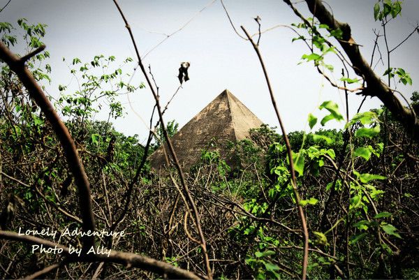 再看不远处的金字塔,想想刚才烈日下泥路上的乱逛,突然有种遥远的错觉。