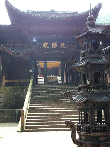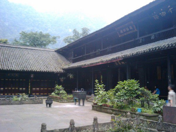 9.从猴区上去就是洪椿坪。此处距离清音阁6公里,争取晚上6:30前到,有斋饭吃。若6:30之后到,只可以点菜,微贵。晚上住宿洪椿坪寺庙,双人间45元/人。