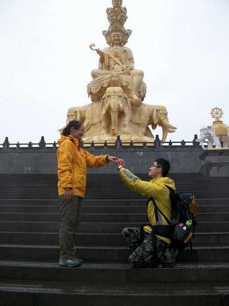 从海拔400米山脚下出发,步行17个小时,120里山路,抵达海拔3000米金顶,在峨眉众神的见证下,求婚!