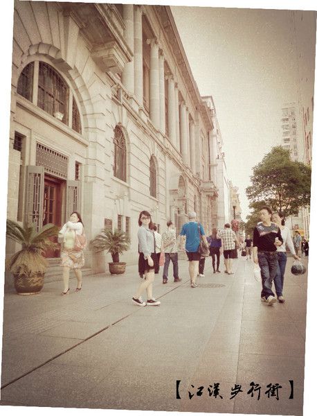 到江汉步行街和中国银行旧址合影,然后坐地铁去光谷。